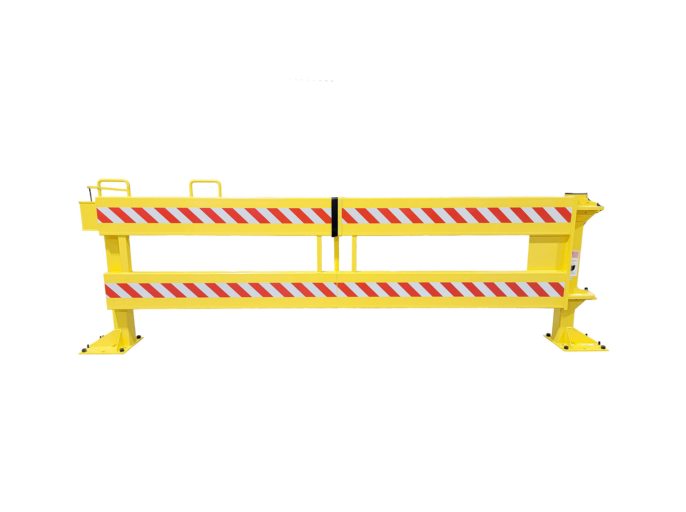La Defender Gate™ 20 de NOVA mide 42 in de alto y tiene el mismo tamaño compacto que la DG10, pero con la adición de un diseño de doble panel de alta resistencia para mayor seguridad. La DG20 es ideal para su uso en andenes de carga, fosas o cubas. Su peldaño inferior cumple con el requisito de riel medio de 21 in de la OSHA, y la DG20 cumple con los estándares de la OSHA con respecto a la protección contra caídas.