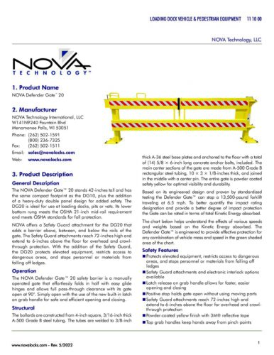 NOVA Defender Gate 20 Product Specifications