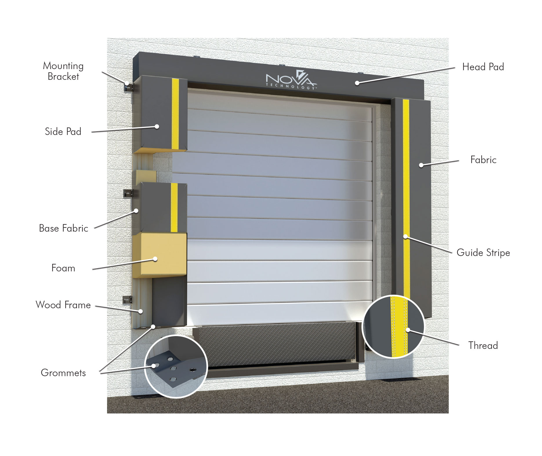 El sello de andén universal de almohadilla de espuma se adapta a puertas más grandes y cuenta con almohadillas laterales y superiores rellenas de espuma que ofrecen un sello positivo. El sello hermético y de bajo consumo entre el remolque y la pared del andén protege el andén del clima, la suciedad y la infiltración de insectos.