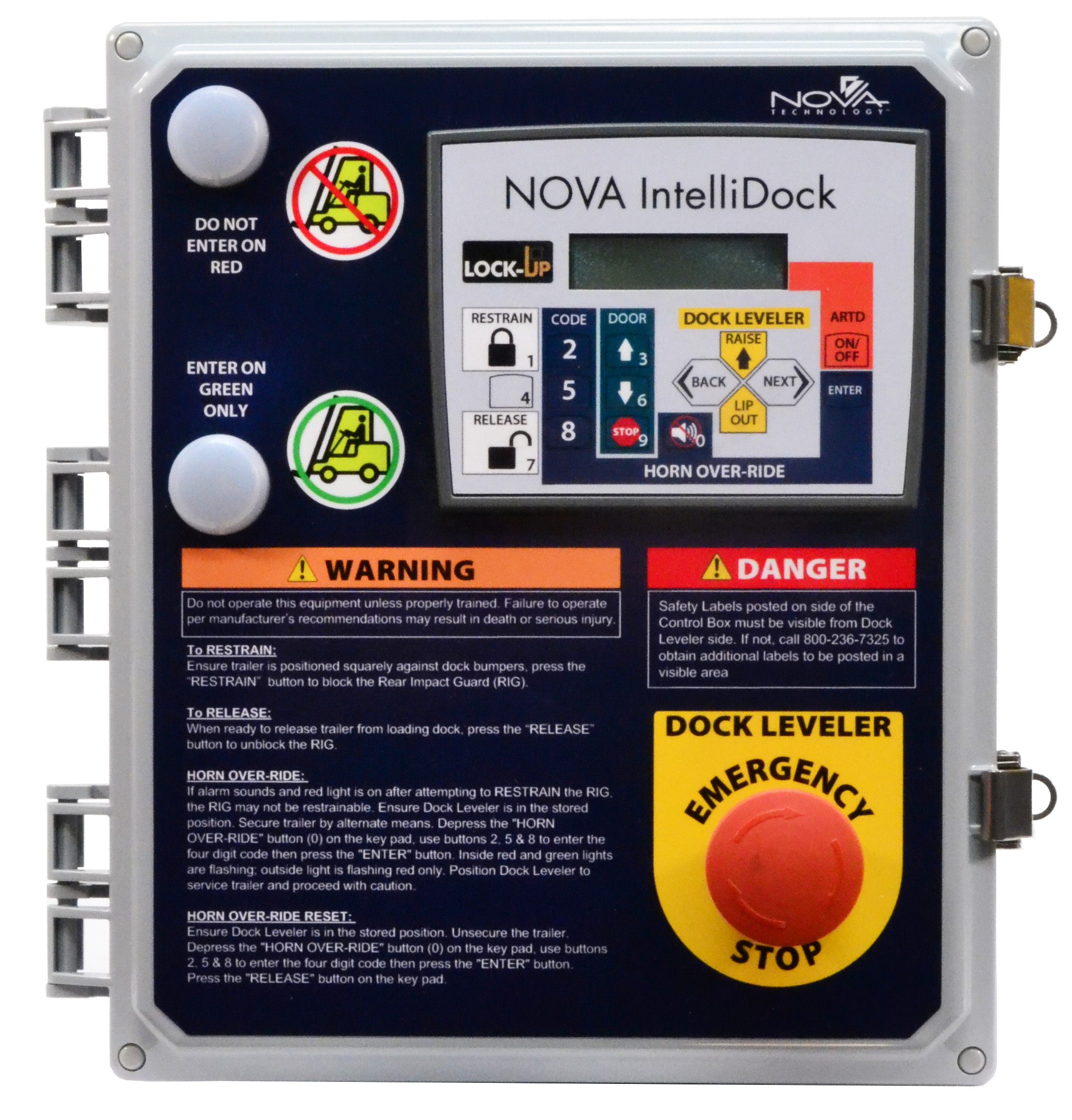 El panel de control combinado IntelliDock de NOVA maximiza la seguridad y la eficiencia en el andén de carga al centralizar las operaciones para el retenedor del vehículo, el nivelador eléctrico y la puerta basculante. Interbloquea las funciones del equipo y asiste a los trabajadores a través de la secuencia de operación preprogramada. El diseño compacto es perfecto para cualquier área de envío o recepción, y la pantalla de comunicación retroiluminada es fácil de leer en entornos con poca luz.