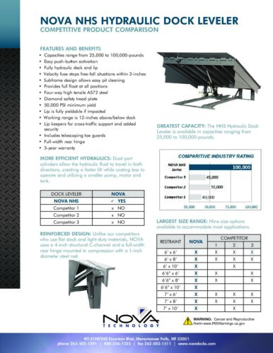 NOVA NHS Hydraulic Dock Leveler Competitive Product Comparison Posted May 17, 2022 by Nova Technology