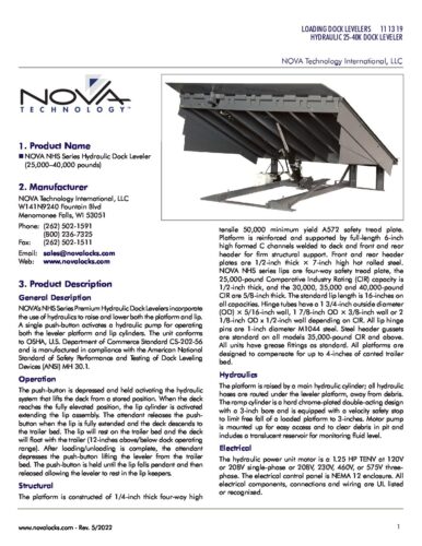 NOVA NHS Series Hydraulic Dock Leveler (25K-40K) Product Specifications Posted June 2, 2022 by Nova Technology