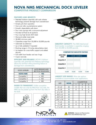 NOVA NMS Mechanical Dock Leveler Competitive Product Comparison Posted May 17, 2022 by Nova Technology
