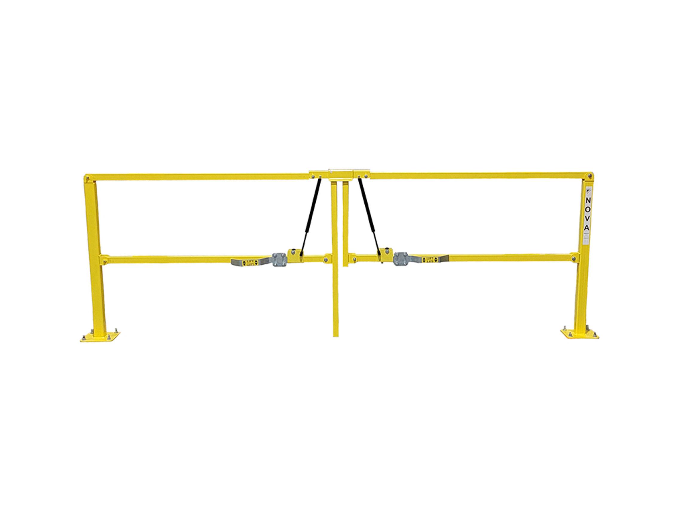 These gates can serve various purposes beyond just dock doors; they can be utilized for fall prevention around floor openings where large materials need to pass through, managing pedestrian access, and separating people from machinery. NOVA offers both Single and Split style Pedestrian Gates in sizes up to 14 feet wide.