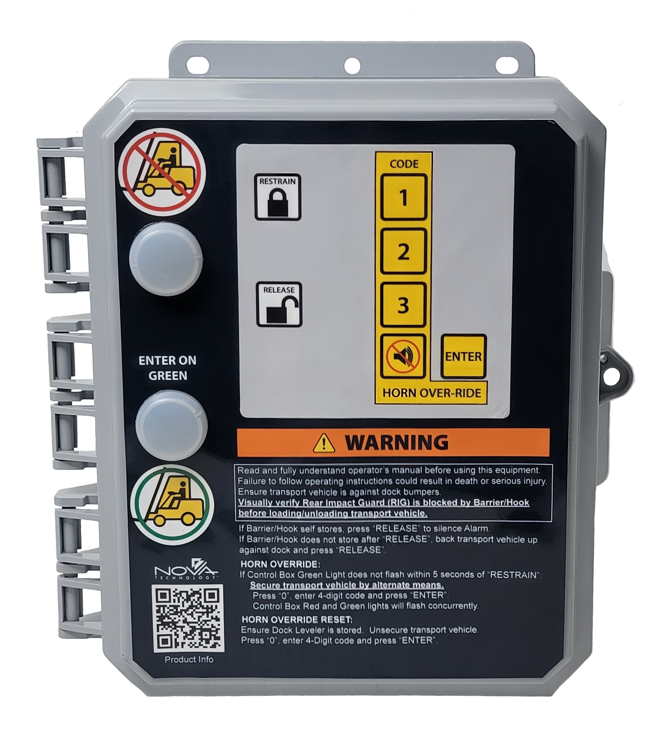 - The CB-00 combined with the NOVA Lock-Up™ Vehicle Restraint will provide a continuous solid red light to inform dock attendant that transport vehicle with RIG is present