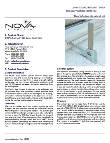 NOVA Truck Lock 350 Series Cast-In Style Product Specifications Posted June 1, 2022 by Nova Technology