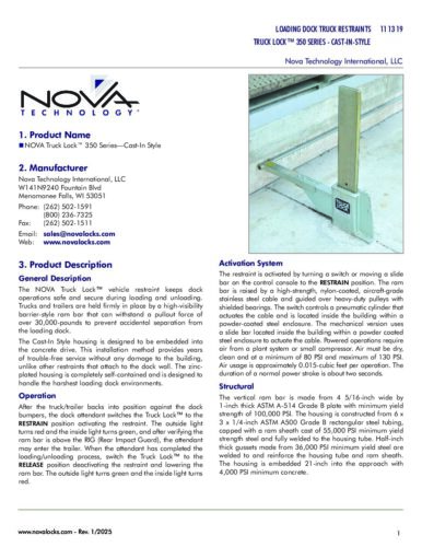 NOVA Truck Lock 350 Series Cast-In Style Product Specifications_Revised 1-2025 Posted May 22, 2025 by Nova Technology