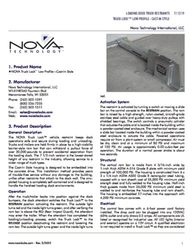 NOVA Truck Lock Low Profile Cast-In Style Product Specifications Posted June 1, 2022 by Nova Technology